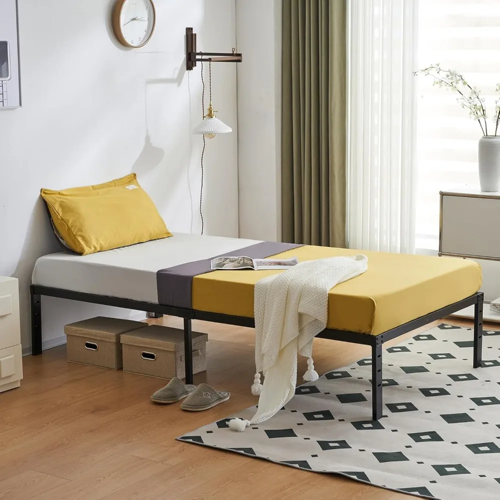 14 Inch Metal Twin Bed Frame with Slat Support, No Box Spring Needed, Heavy Duty Steel, Black