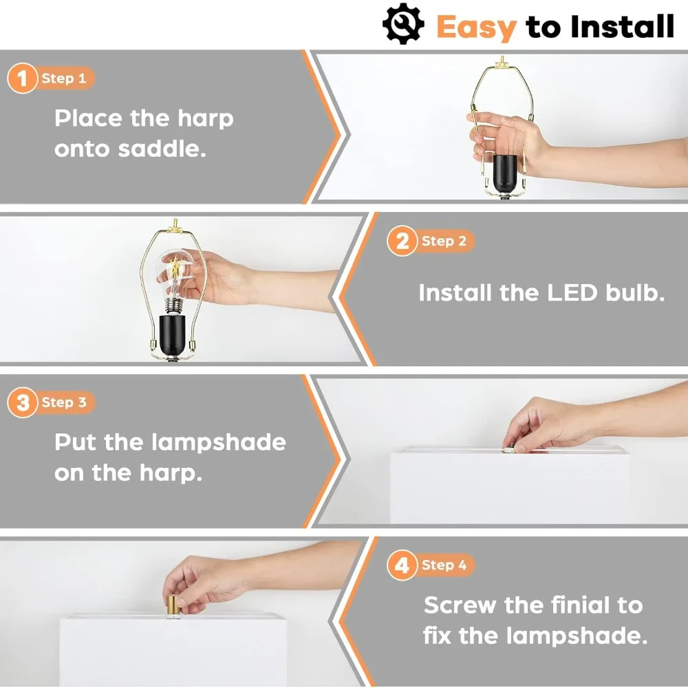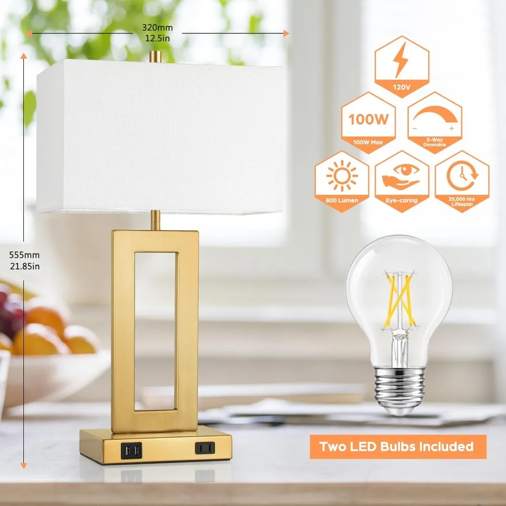 - 【All E26 Bulbs Included & Ideal Size】We cover 4 A19 Edison bulbs for this set of 2 lamps so no extra market trip for compatible bulbs and save your bucks! Each bulb gives out 2700K soft light at 800lm brightness which only consume 7w, excellent eco-friendly table lamps for green lifestyle! 22''H & 7.3''W allows the bulb for 360° lighting, ideal choice for bedside reading lamps, end table lamps, side table lamps, office working task lamps. Lighten up your space with TOBUSA gold table lamps