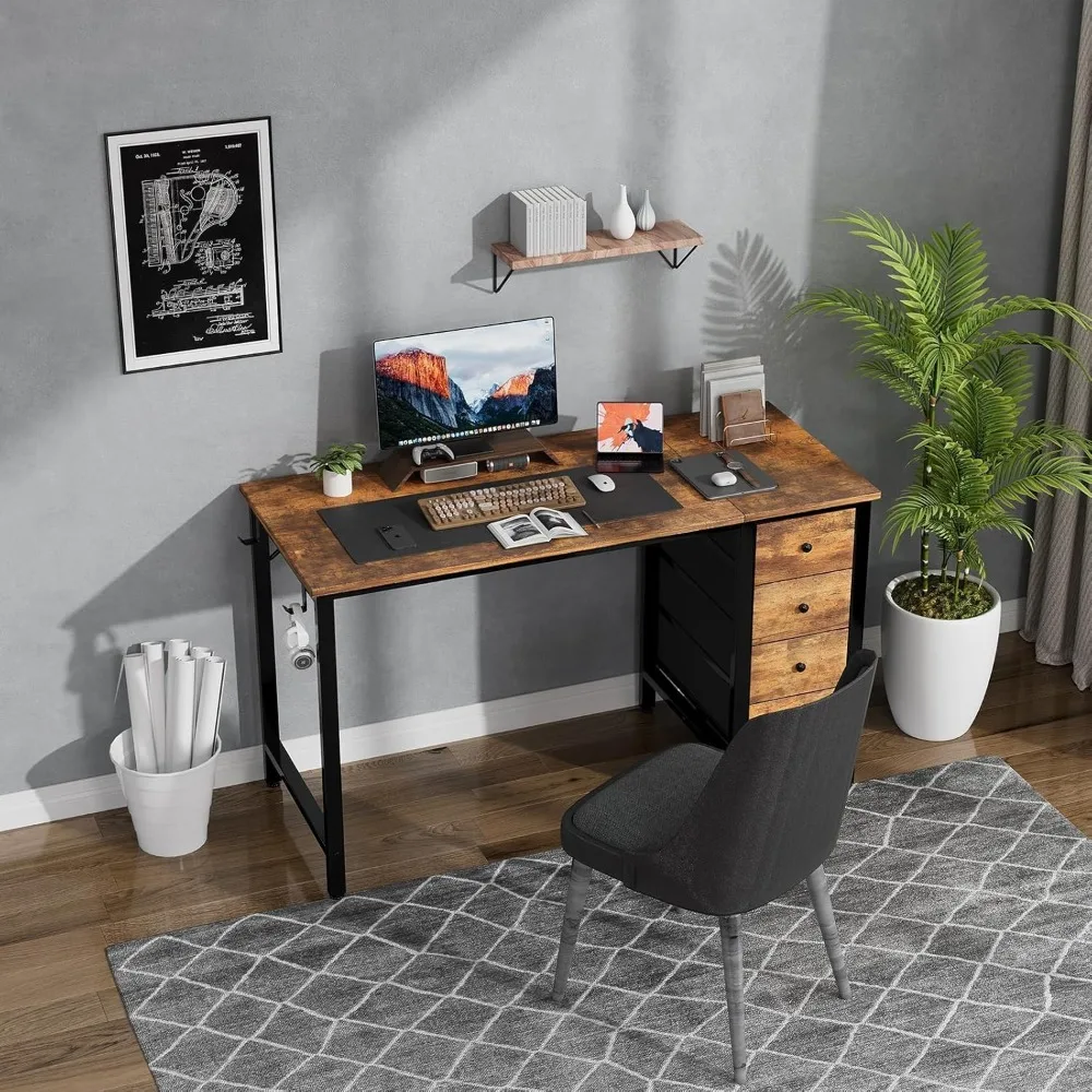 47 Inch Fabric Drawer Computer Desk, Reversible Writing Desk for Home Office, Modern Simple Style