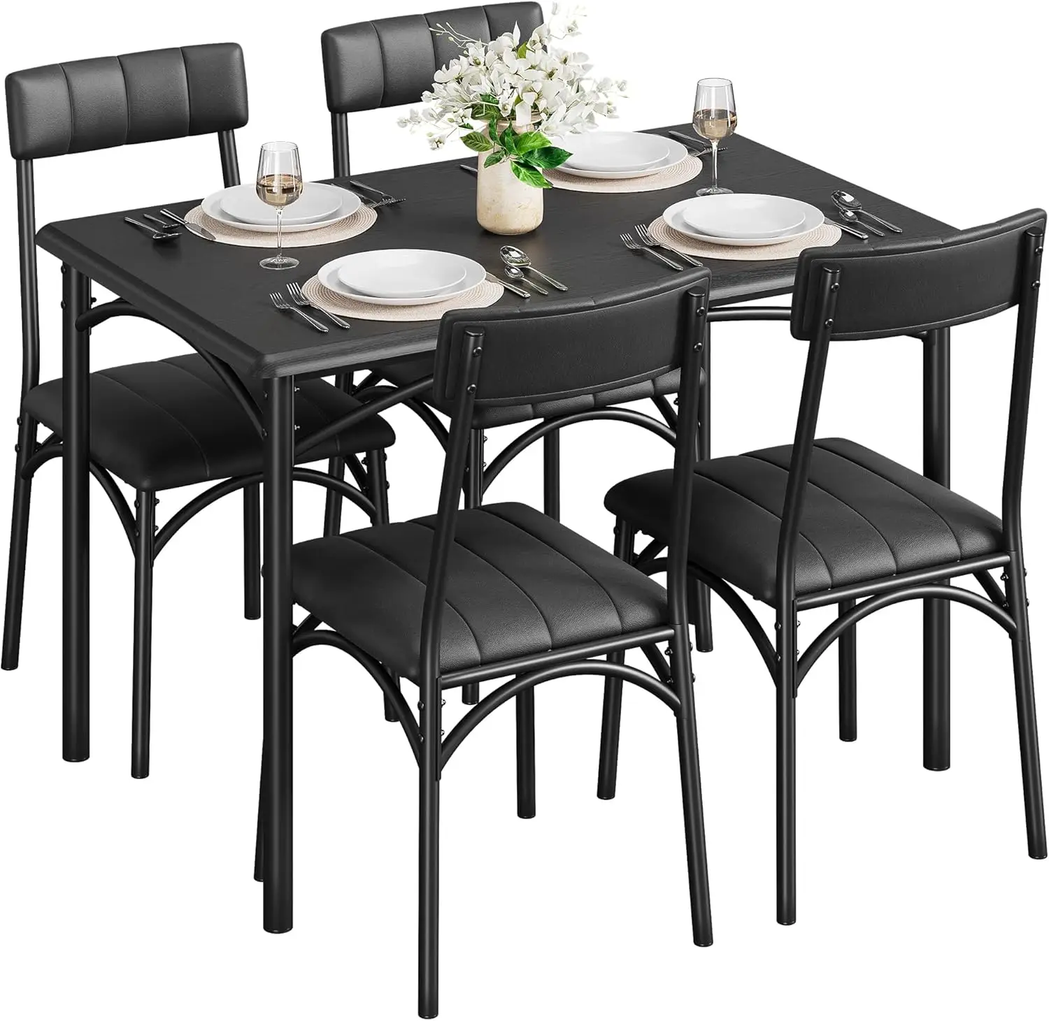 5-Piece Industrial Dining Table Set, Compact Kitchen Table & 4 Padded Chairs, Farmhouse Dining Room Furniture Set for Small Spac