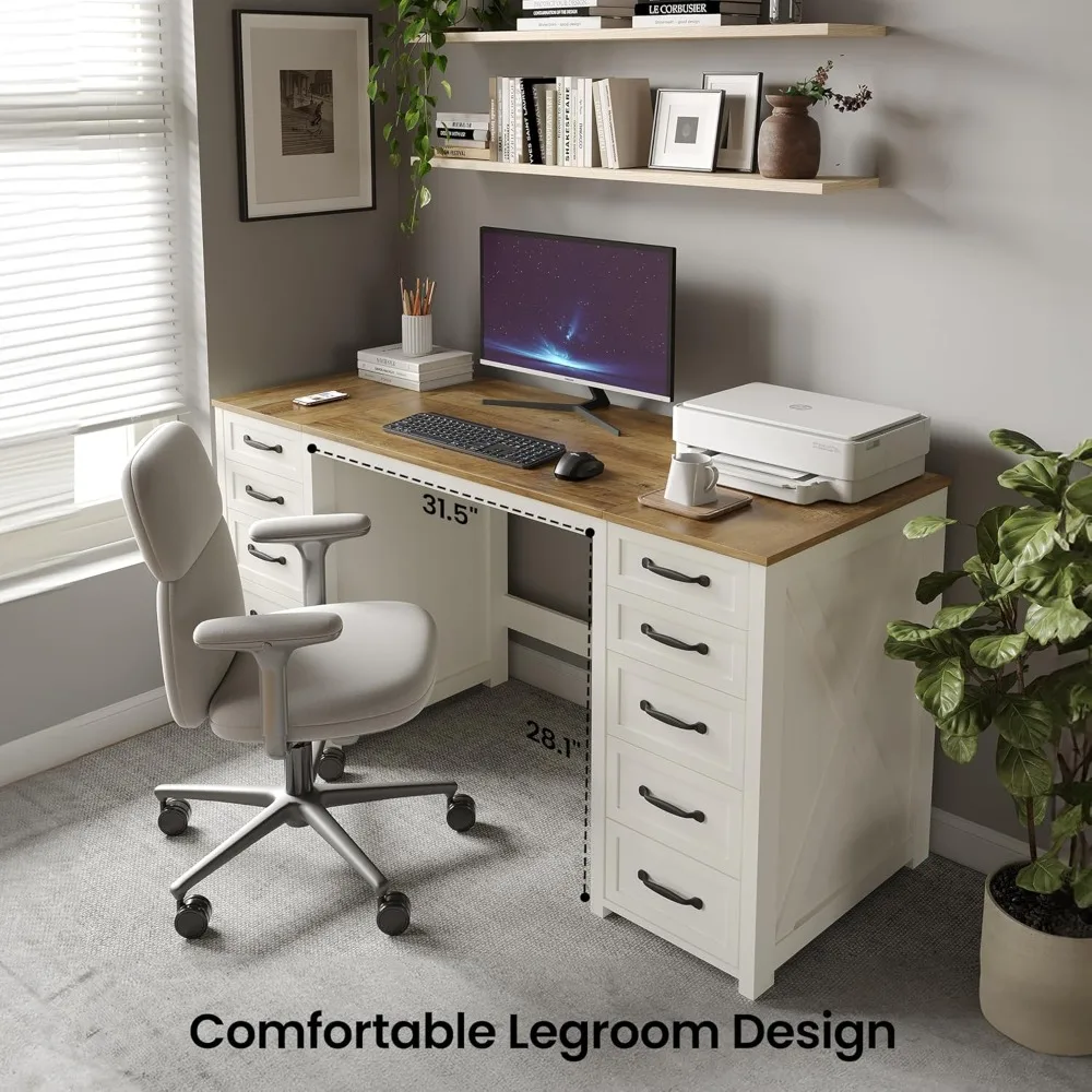 60" Farmhouse Home Office Desk with 10 Wooden Drawers, Rustic Computer Writing Desk with Power Outlets, Large Executive Desk