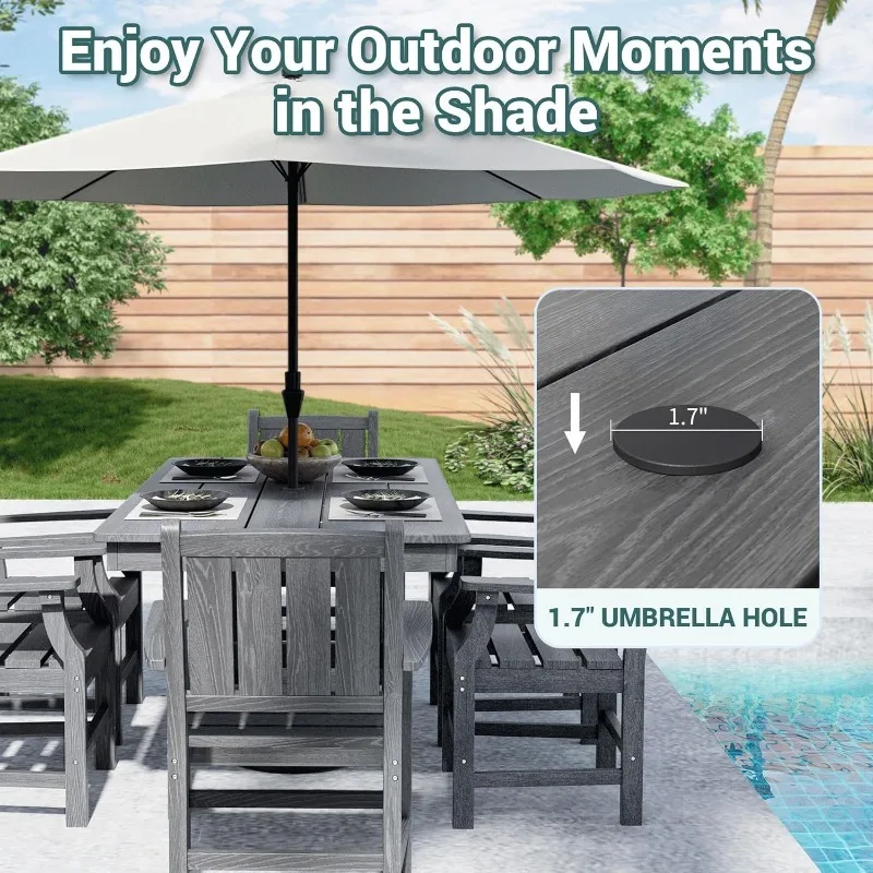 Durable Material: Constructed with premium HDPE, this outdoor dining set for 6 is recyclable, weather-resistant, and built for long-lasting outdoor use, making it an eco-friendly choice