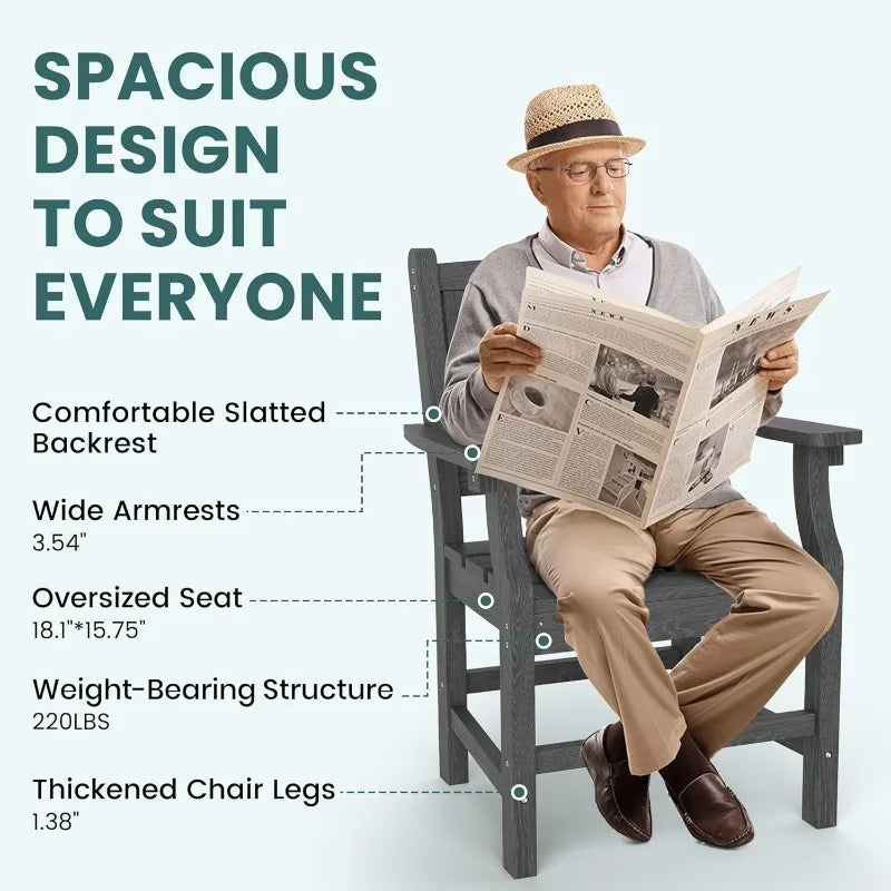 Enhanced Comfort and Support: The patio chairs set feature a sophisticated armrest design with smooth curves, a spacious seat, and thicker legs for enhanced stability, providing extra strength and comfort for a wider range of users