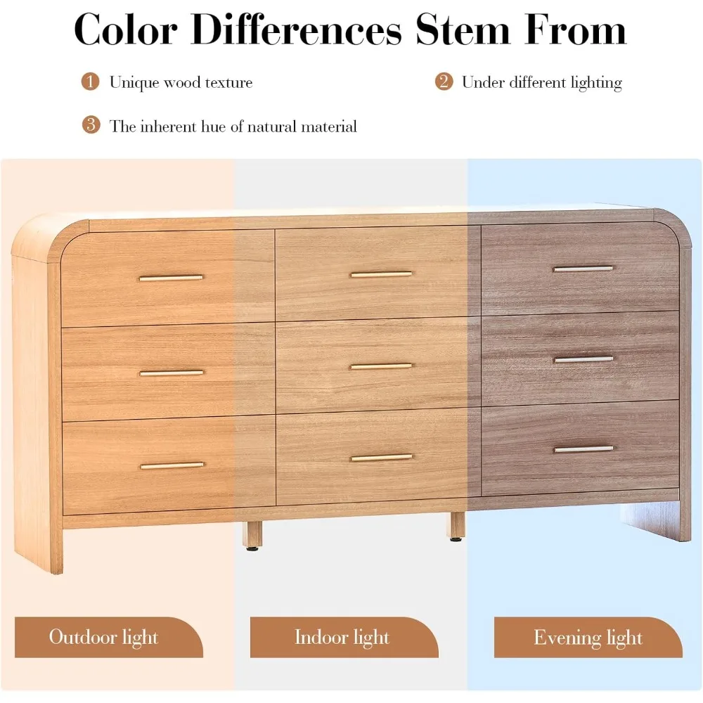 Curved 9-Drawer Dresser for Bedroom, 63" Wide Modern Chest of Drawers, Vanity Desk TV Stand for Living Room, Closet Storage