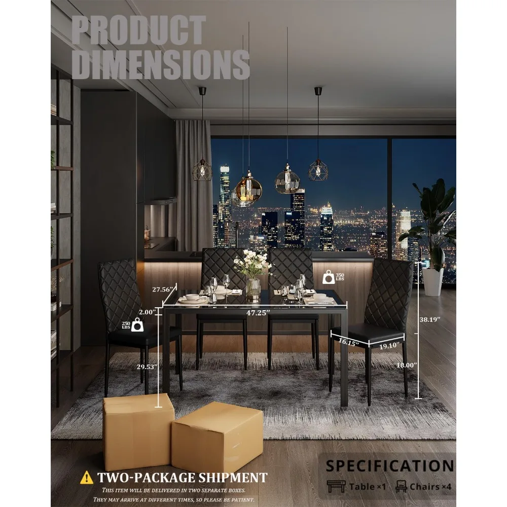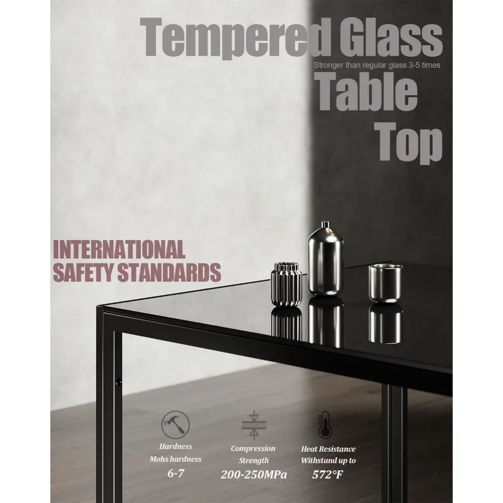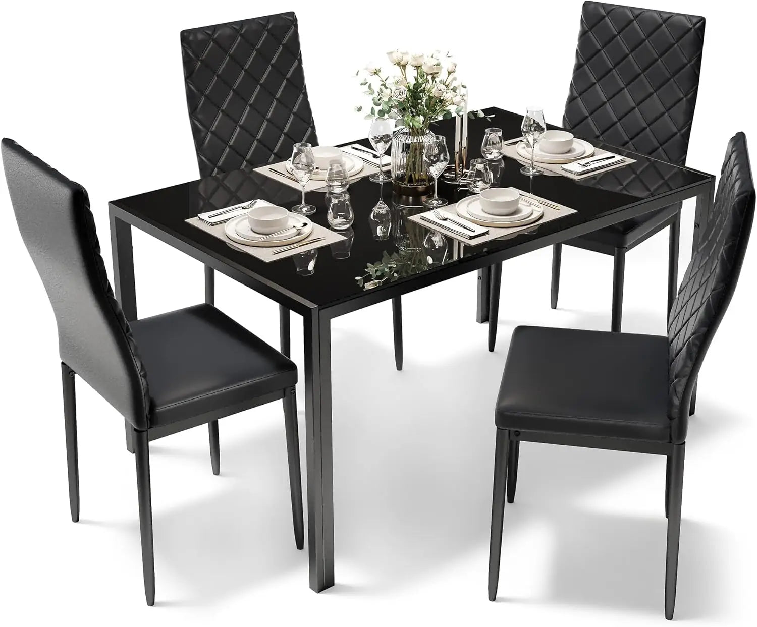 Dining Table Set for 4, Kitchen Table and Chairs Set of 4, 5 Piece Modern Dining Room Table Set with Tempered Glass Top