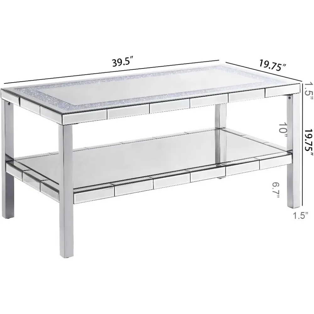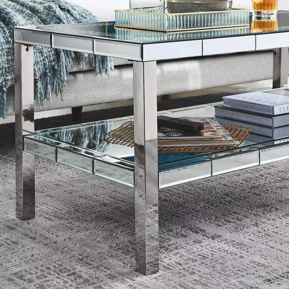 - "Most Customers Agree at First Glance—Stunningly Gorgeous": This coffee table mesmerizes with its sleek glass tabletop, reflective silver mirrored legs, and an additional glass lower shelf, creating a dazzling centerpiece that effortlessly blends modern elegance with captivating charm.