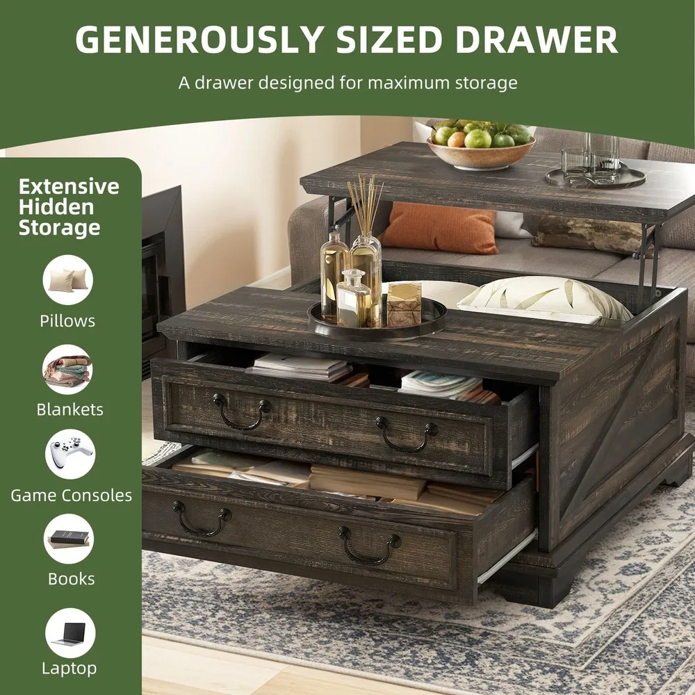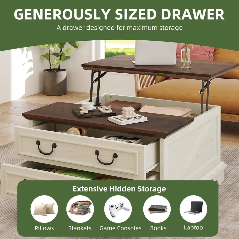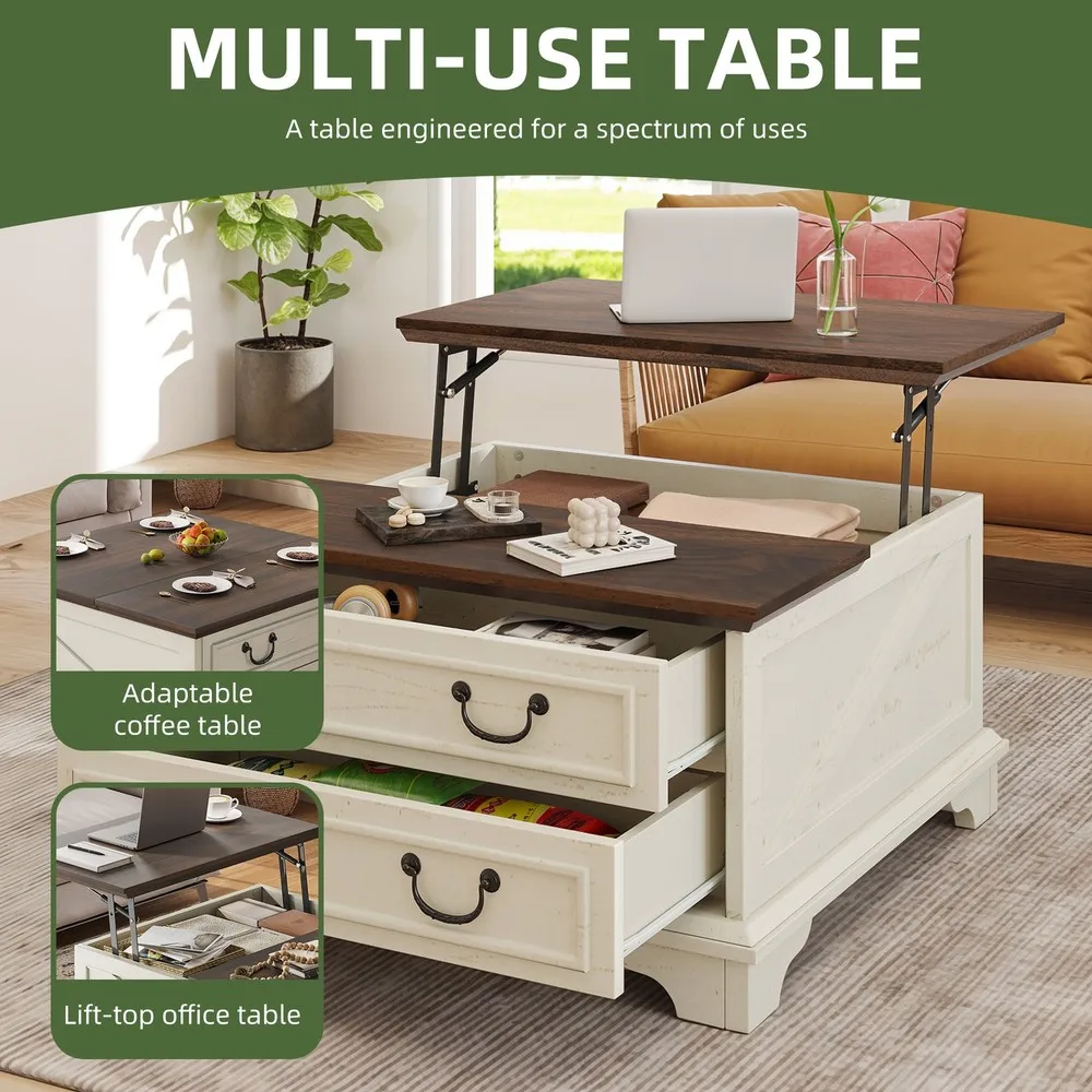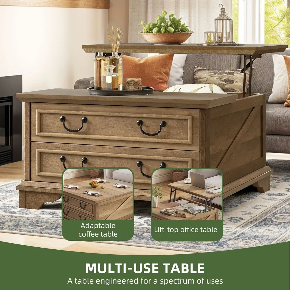 Farmhouse Square Lift-Top Coffee Table Large with Hidden Compartment Living Room
