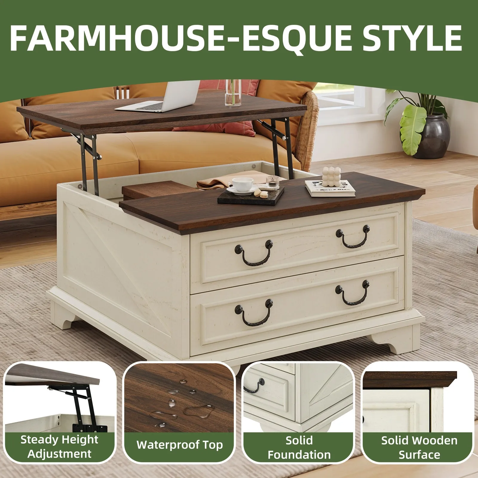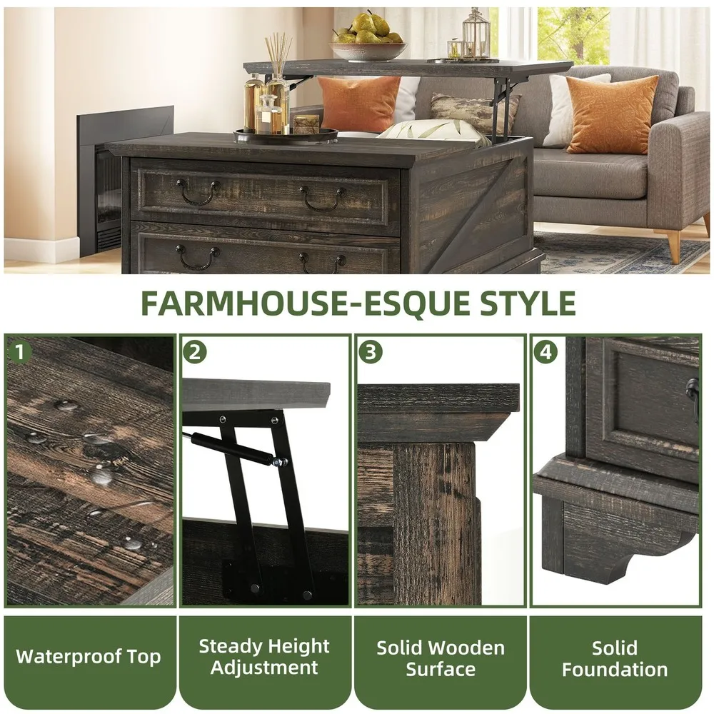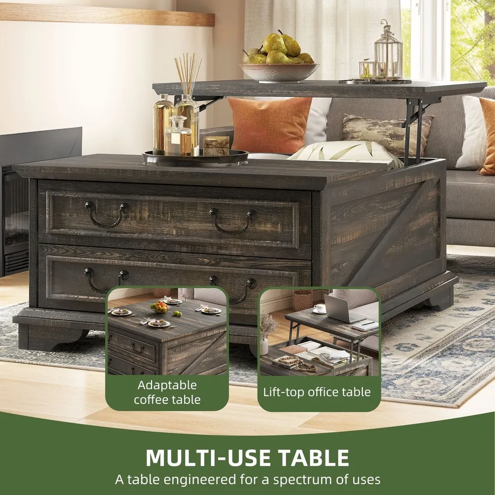 Farmhouse Square Lift-Top Coffee Table Large with Hidden Compartment Living Room