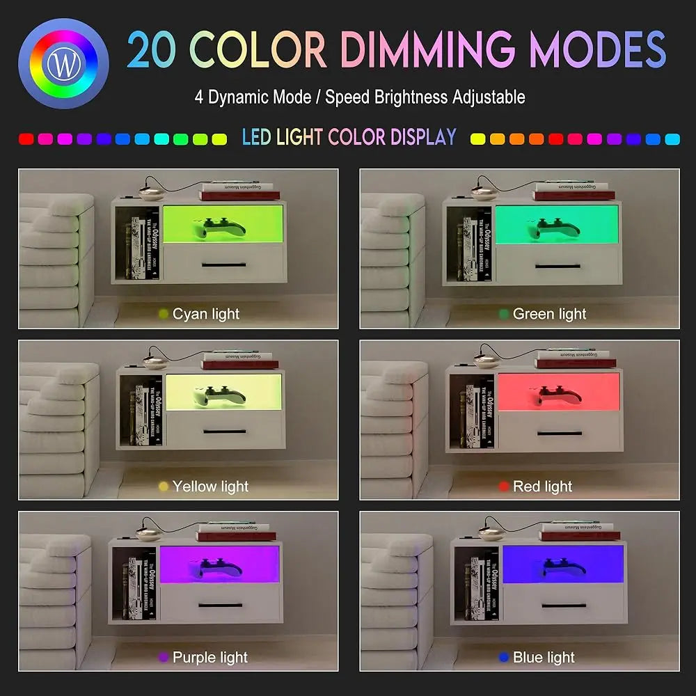 Experience The Cooln Of Rgb Lights: With 20 Changeable Colors That Beautifully Complement The White Finish, You Can Always Find Your Favorite Lighting To Enhance The Bedroom Atmosphere. Use This Led Nightstand As A Nightlight And Control The Rgb Lights With The Wirel Remote For A Dynamic Lighting Experience (For More Dynamic Lighting States, Please Refer To The Pictures).