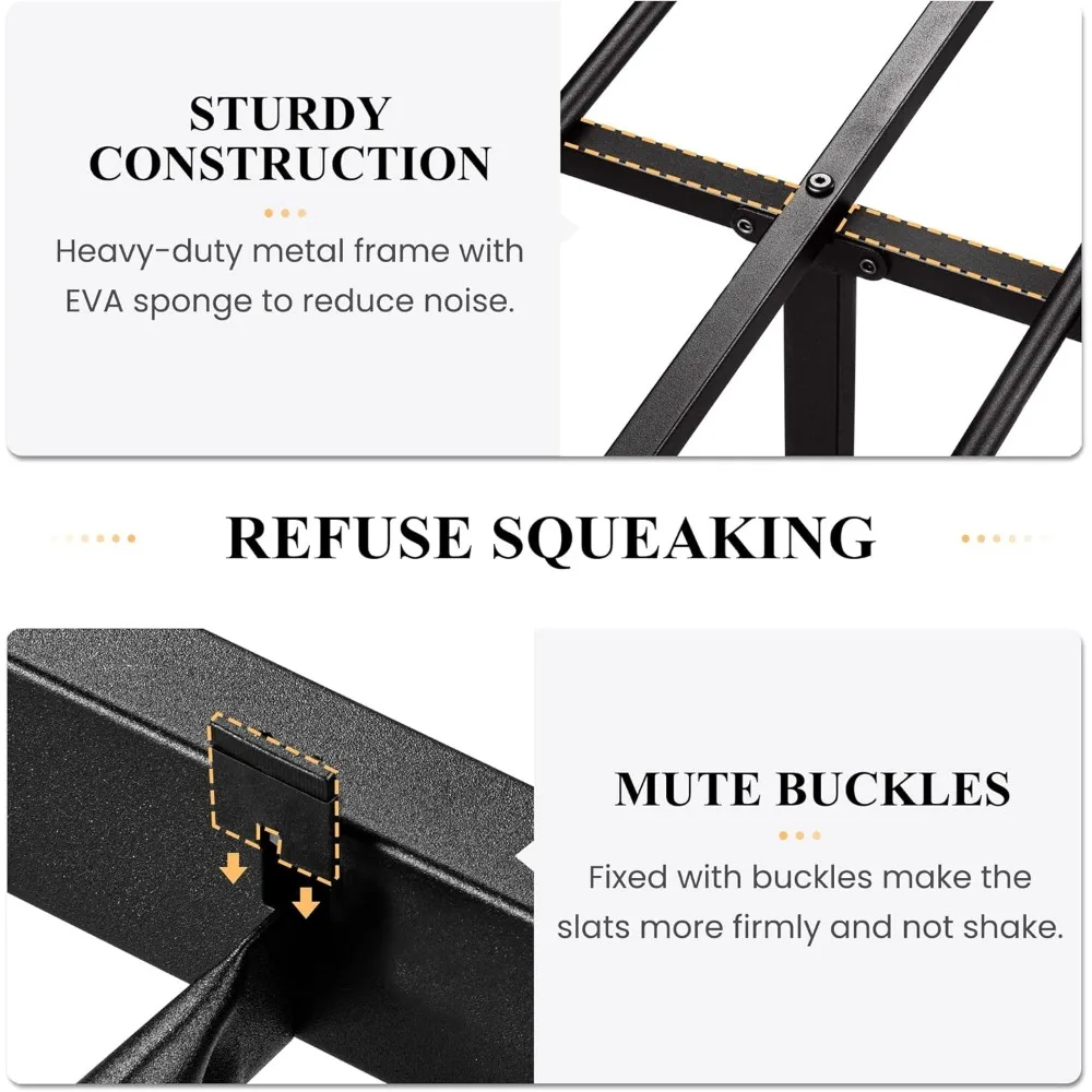 - 【NOISE-FREE】 We provide the rubber strip pressed on the slats to prevent noise. Plastic foot plugs added to the bottom of the bed feet will never scratch your beloved floor.