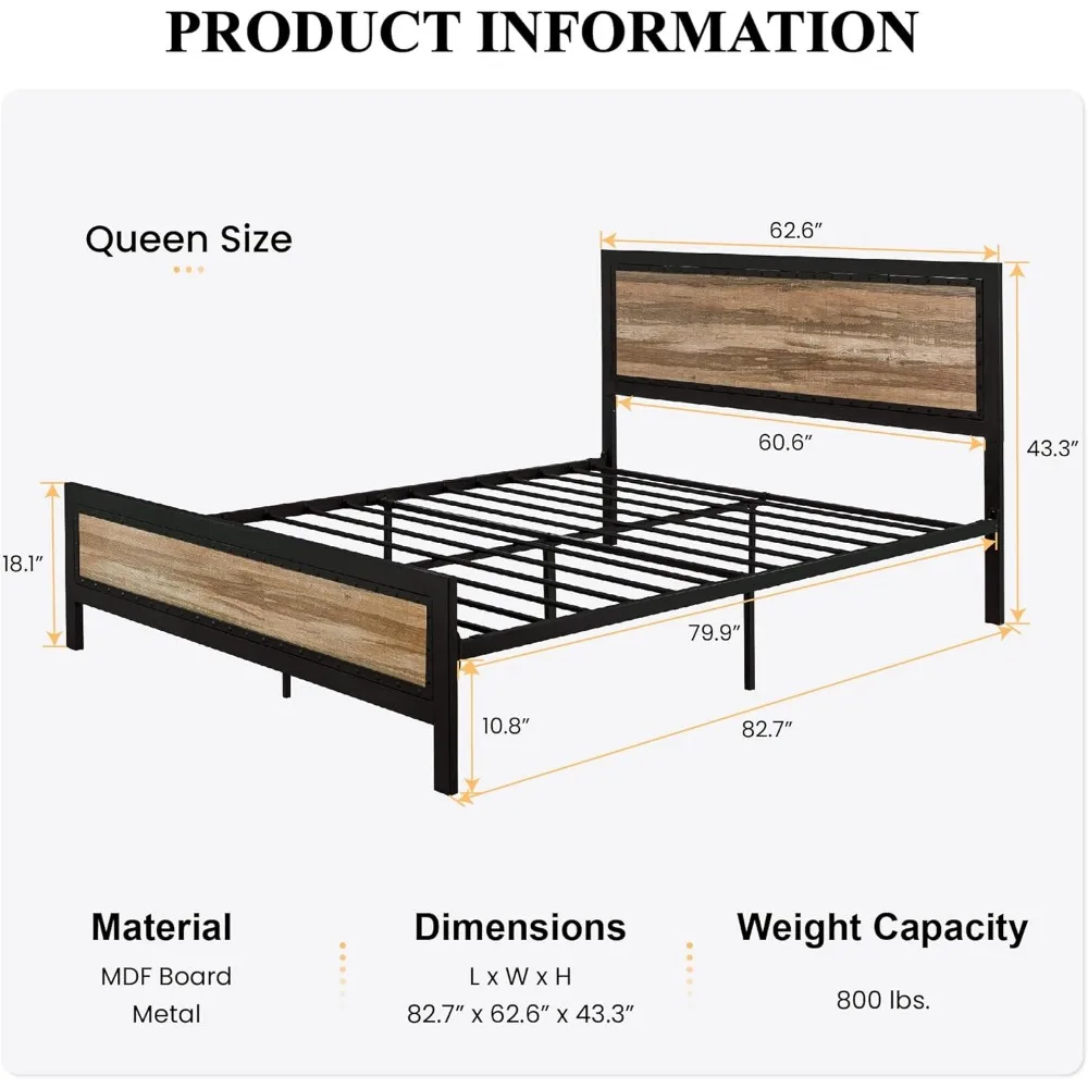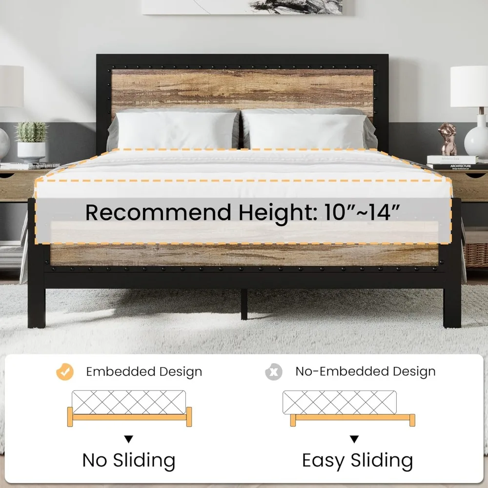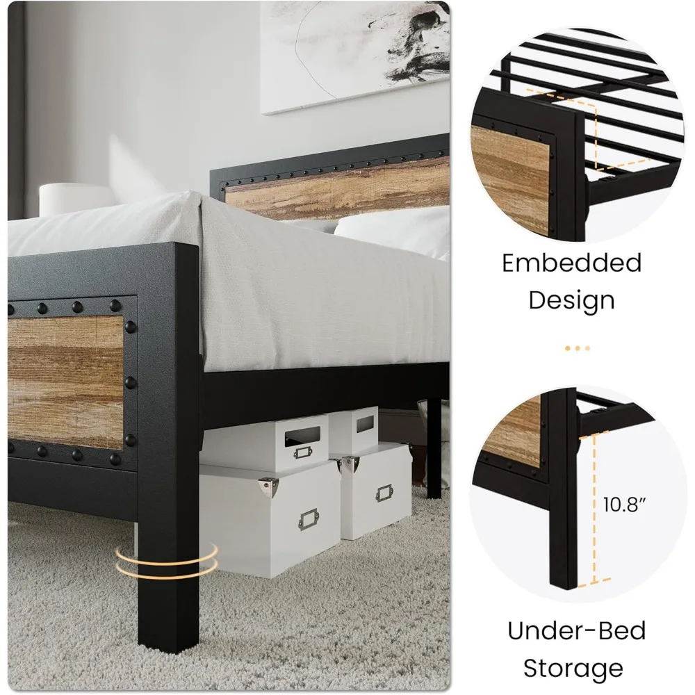 - 【UNIQUE DESIGN】 Frosted headboard and footboard with rivets, which are made of 29 lbs. high-quality metal, rich your room in industrial and unique individualism. The wooden look adds an elegant element to your life.