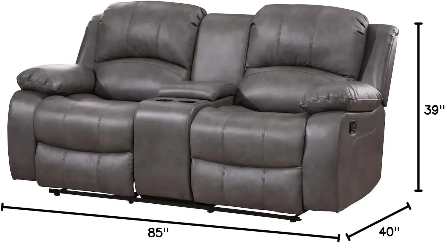 2PC Leather Air Reclining Sofa Loveseat Set Living Room Set 8018 Multiple Colors (Gray)