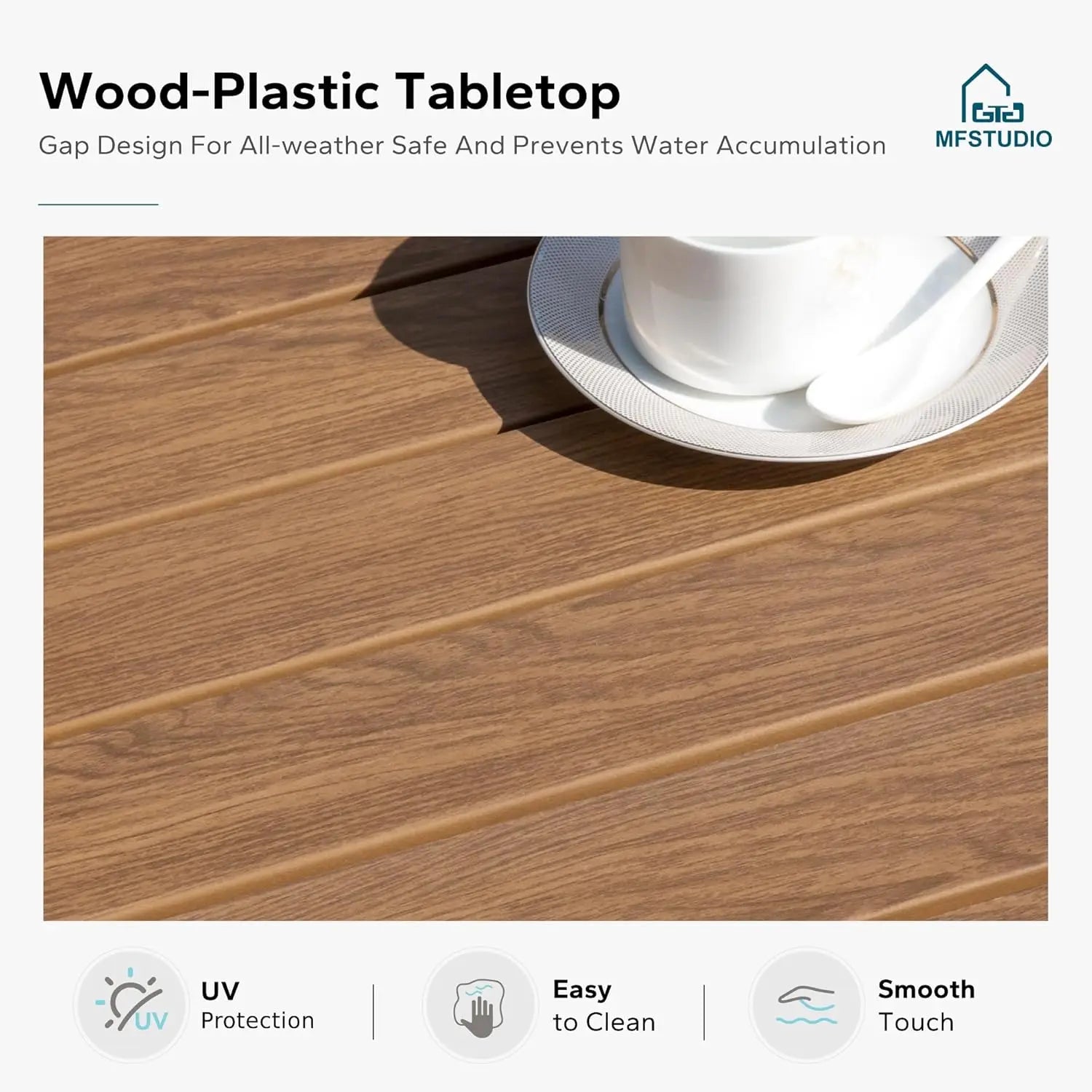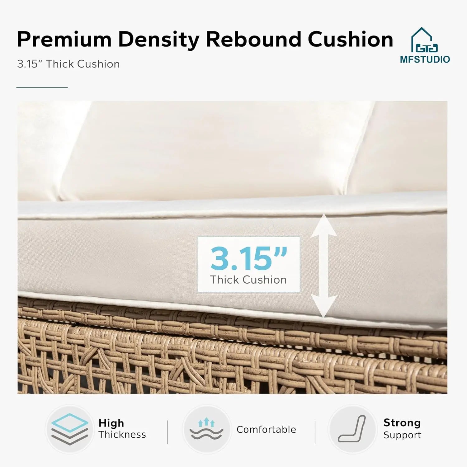 Patio Wicker Sectional Sofa Set 3 Pieces, Outdoor Small L-Shaped Couch Furniture Set with Wood Table and 2 Bench Sofa