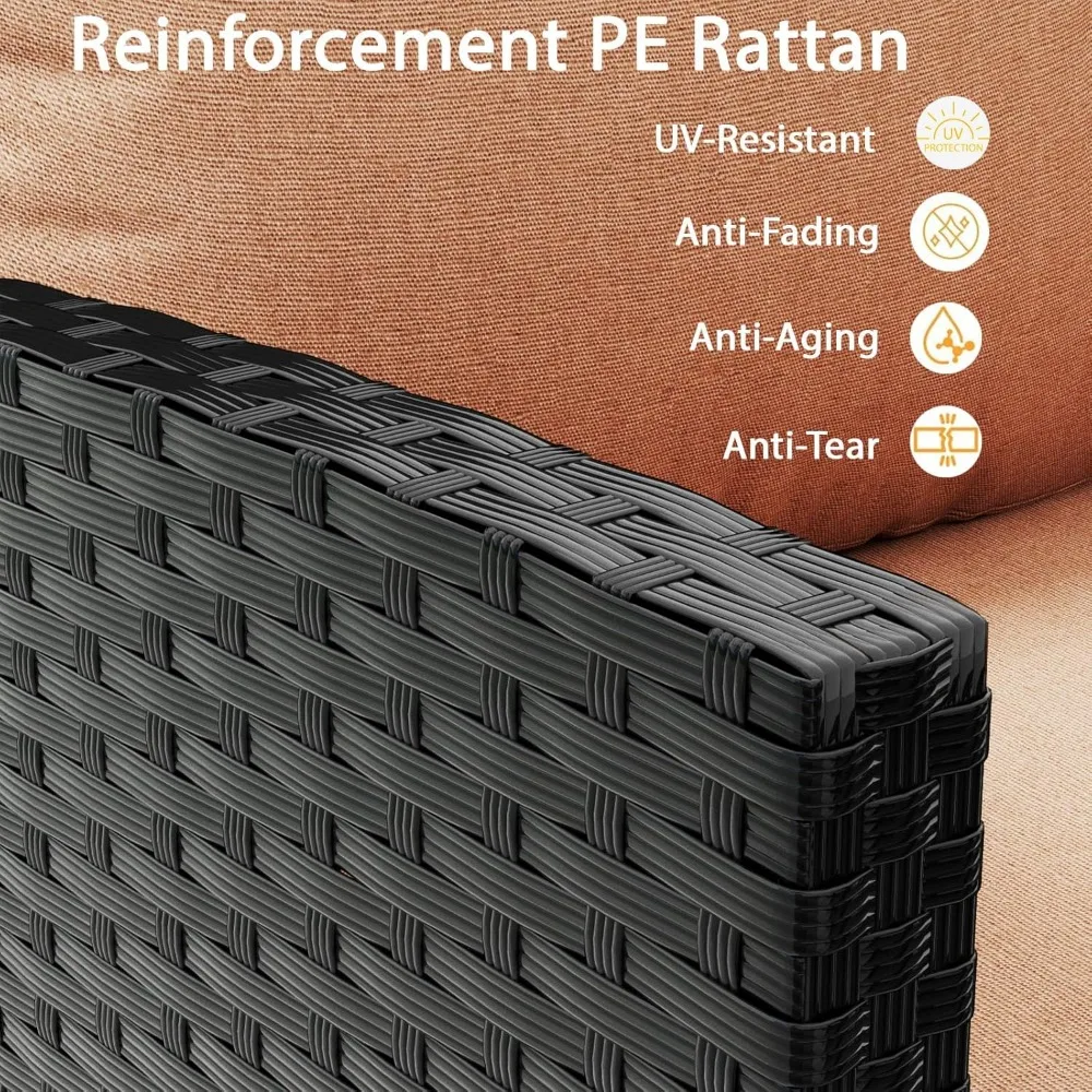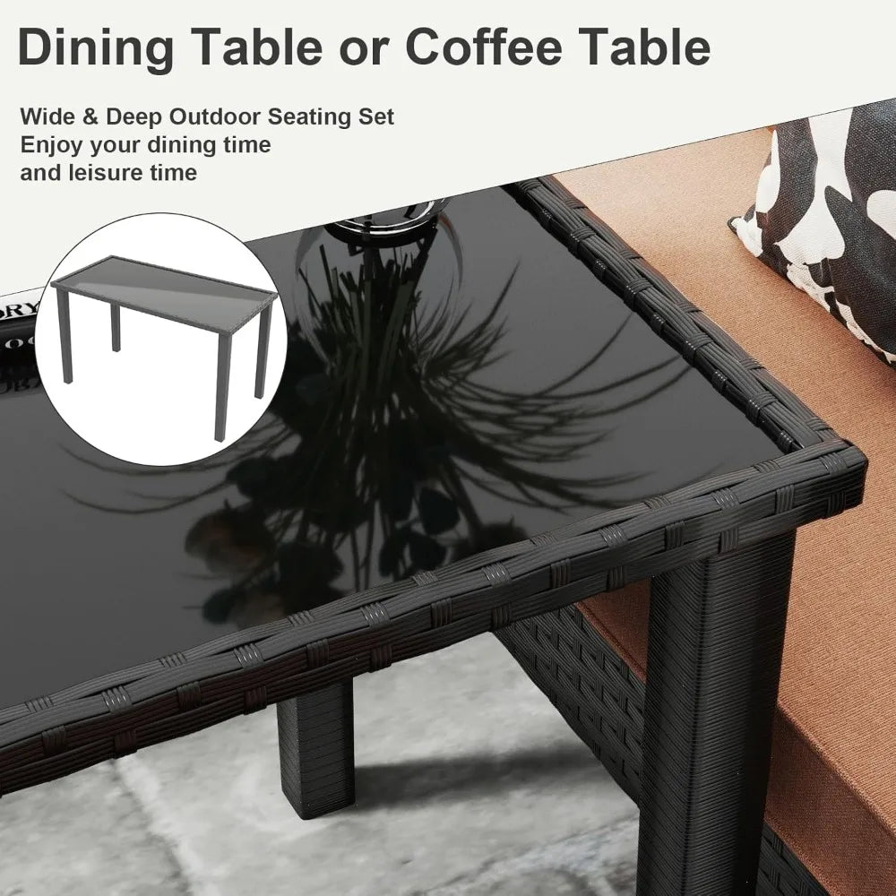 PatioConversation Set,Outdoor Furniture Sectional with Throw Pillows and Anti-Slip Cushions,PE Rattan Sofa Set with Dining Table
